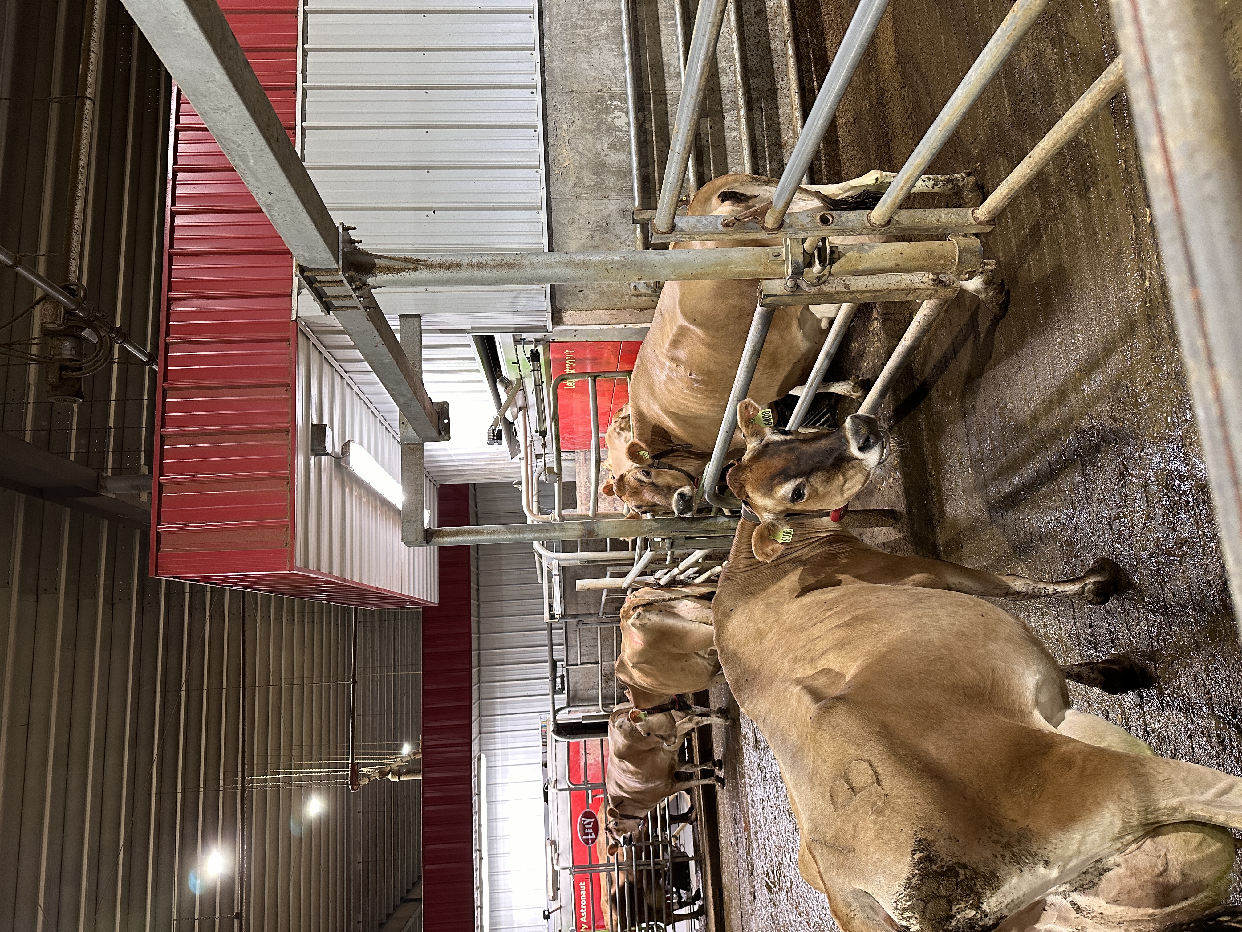 again, and kicks them out the front. Eventually, each cow gauges their milking