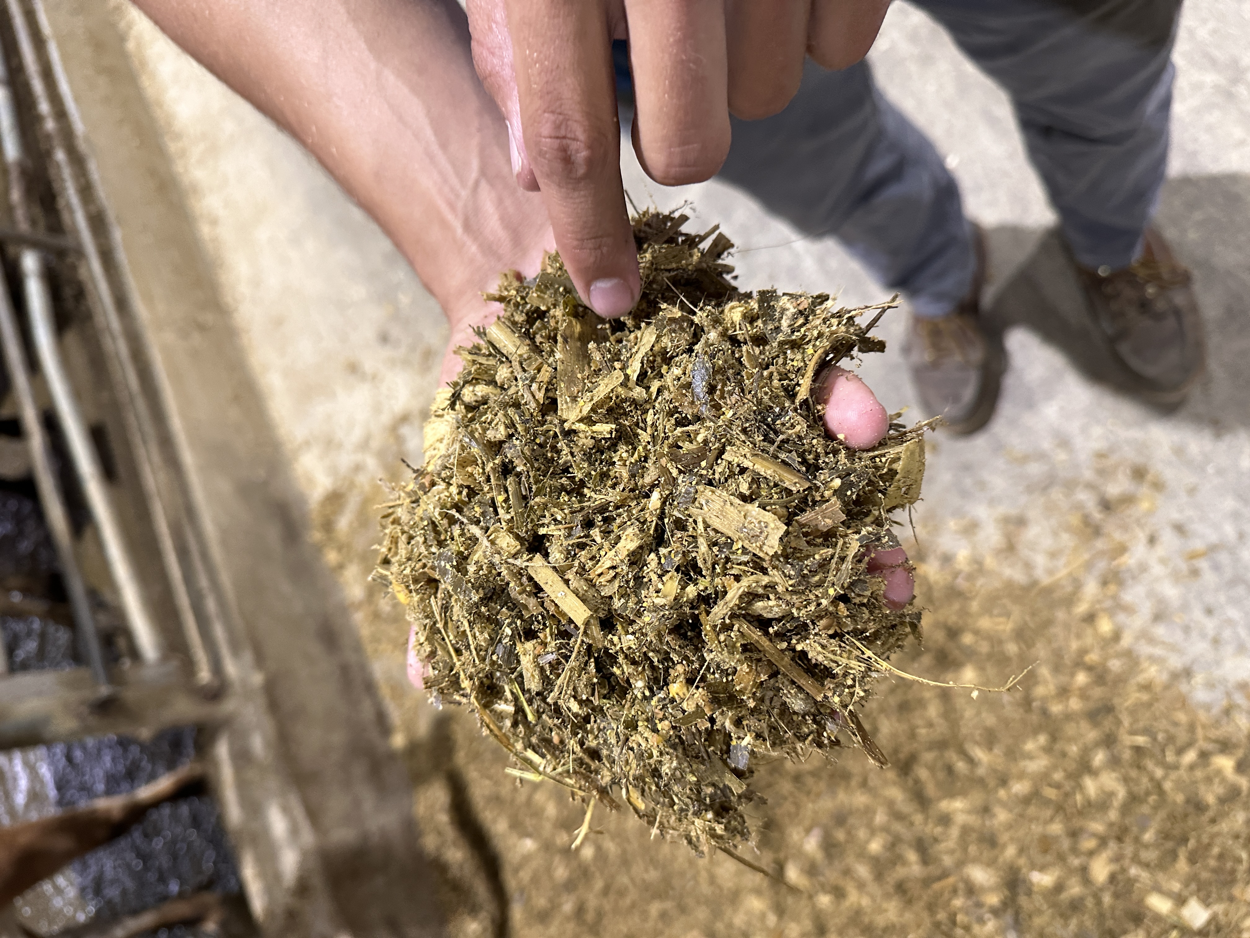 Food is very carefully composed. Adjusting the mix is one of the tasks with which the diary farm consultant helps. The mix contains corn husks, soy, bits of hay, and around 10 other plants. All these ingredients are acquired separately, and are mixed on site.