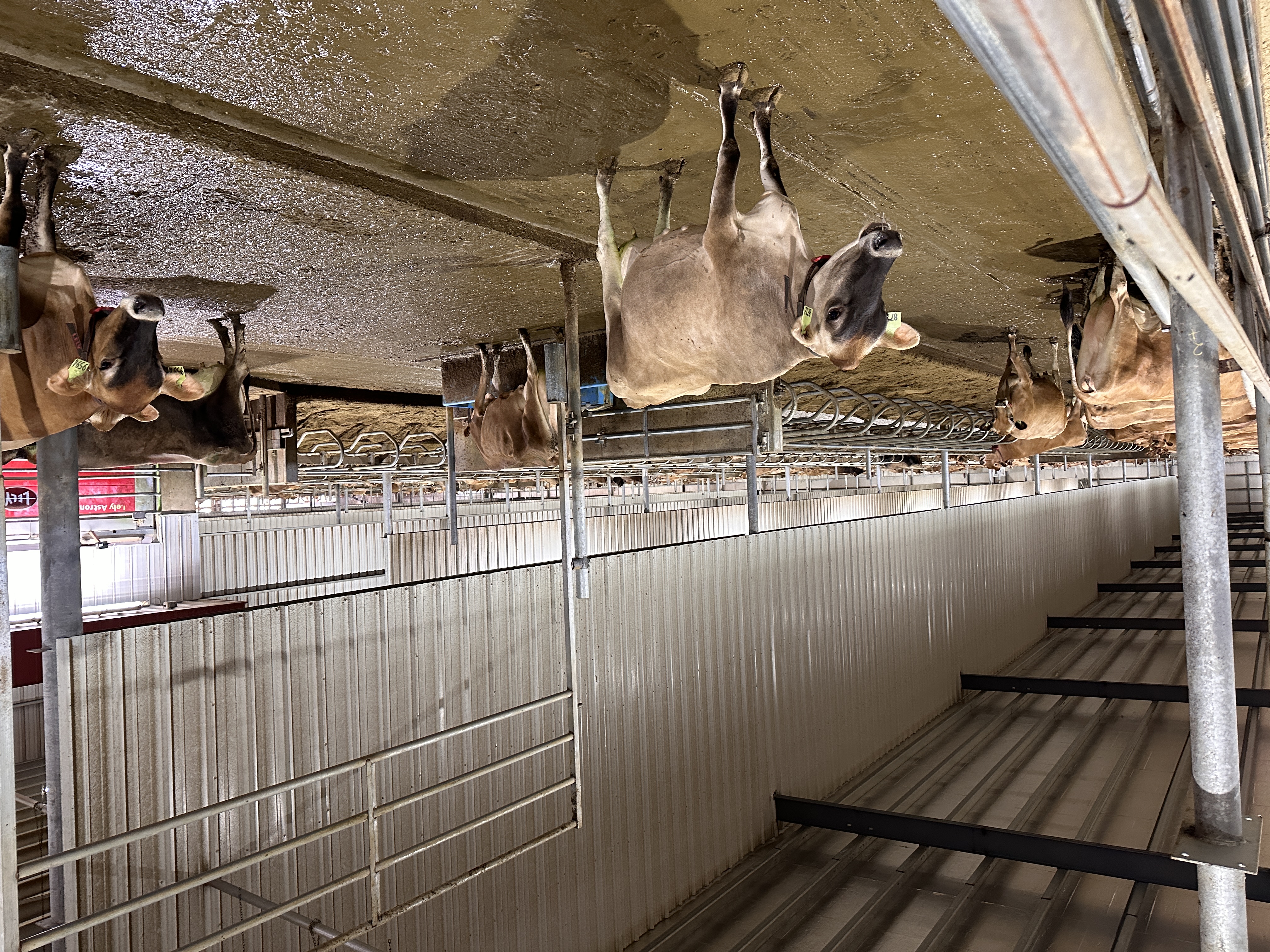again, and kicks them out the front. Eventually, each cow gauges their milking