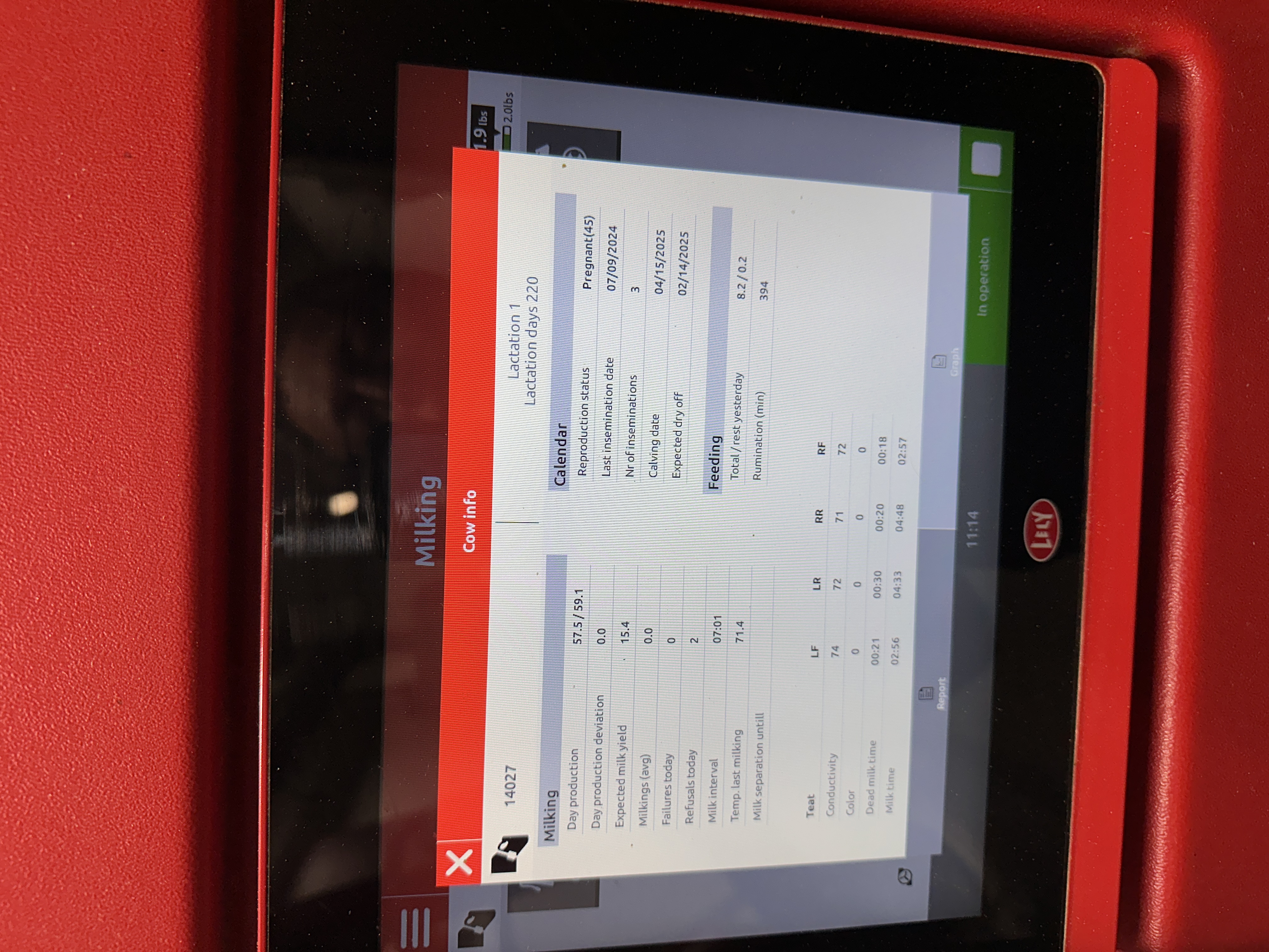 The machine records each cow's details, as seen in this screenshot. Since there