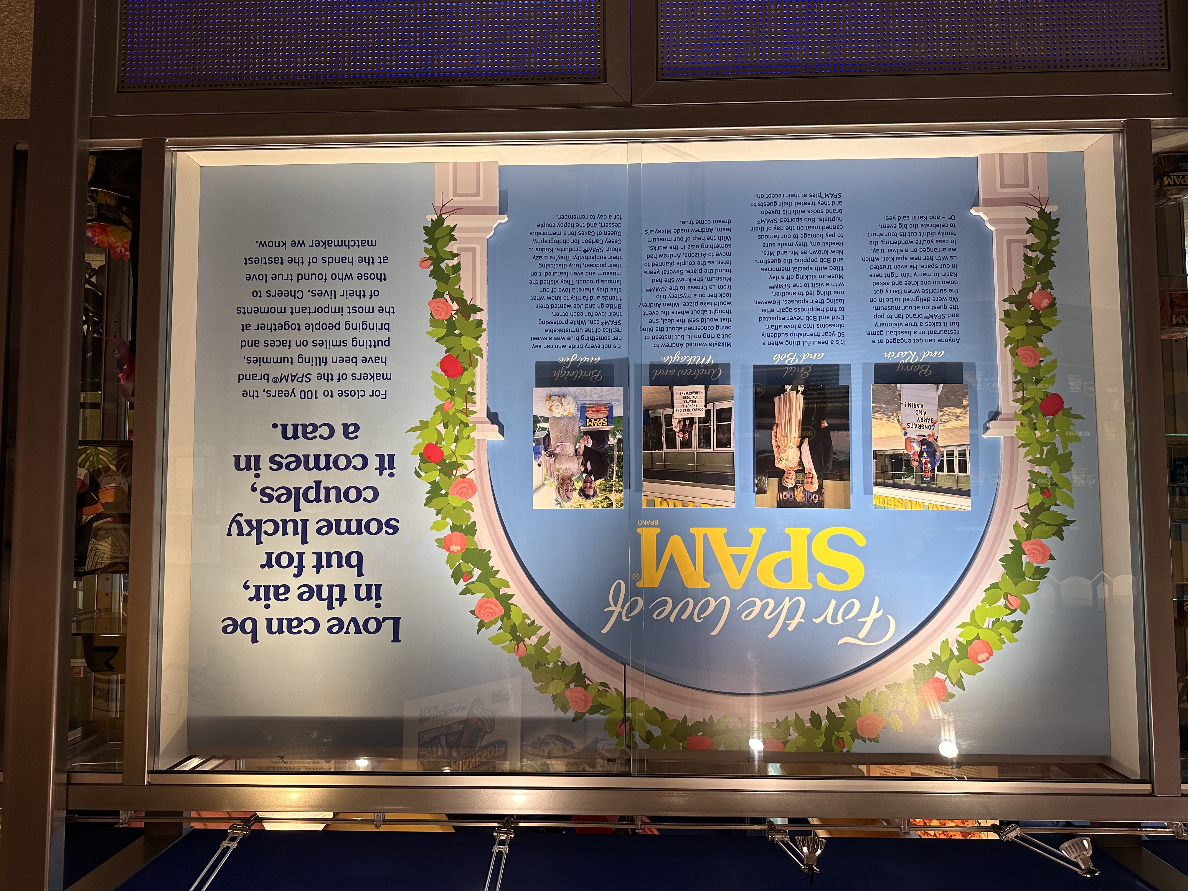 This spirit is why Spam has inspired friendship, and played important symbolic roles in love and marriage. A dedicated display celebrates those moments of triumph in the history of American Spam.