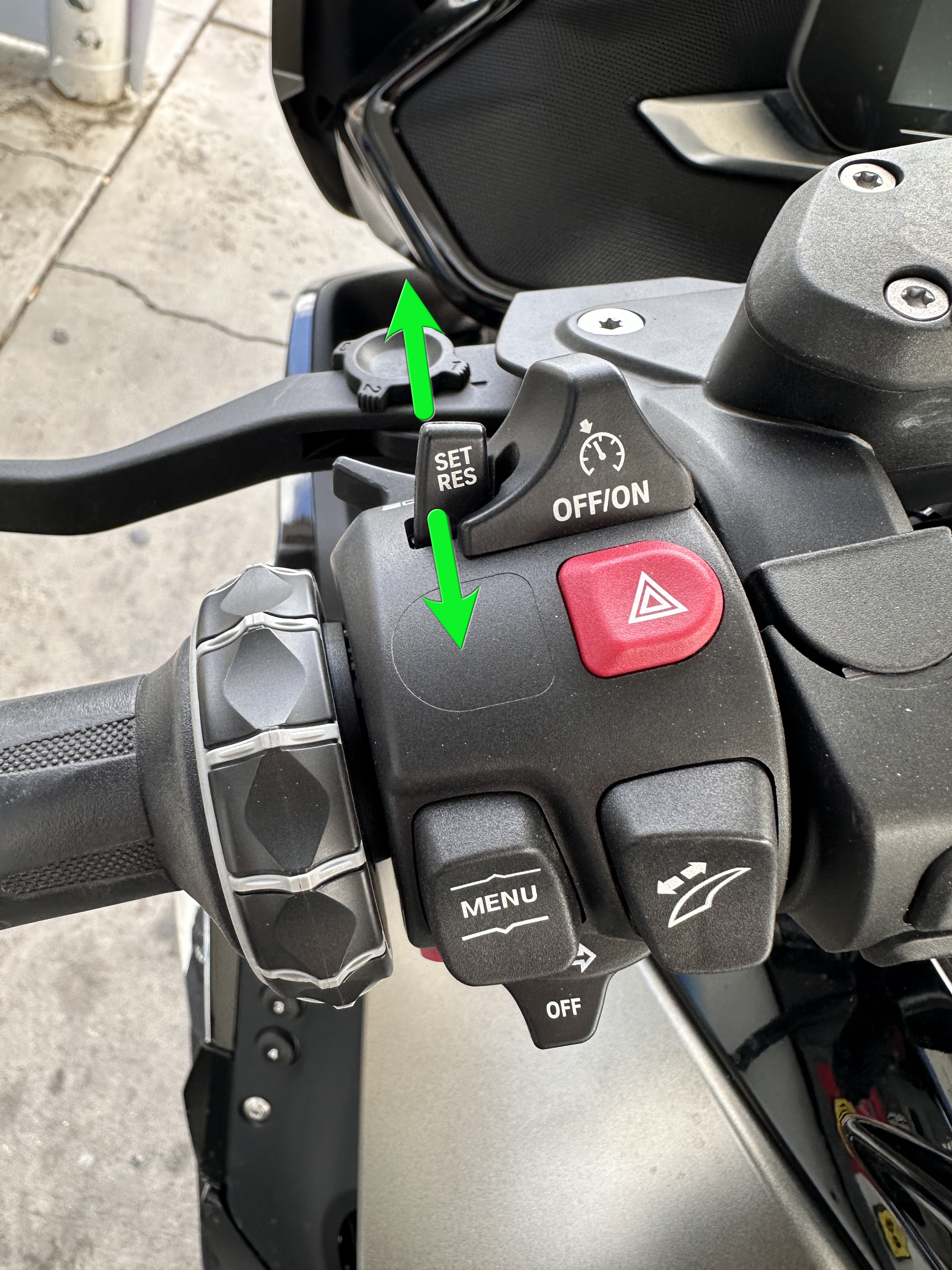 Say, I had to disengage the cruise control, because I had to slow down. Now I want to get back to the speed to which the control was set before. Do I push the lever forward, or towards me? It's a 50/50 chance. If I do it wrong, I'll set the cruise to the current, slow speed, rather than resuming. How to remember?